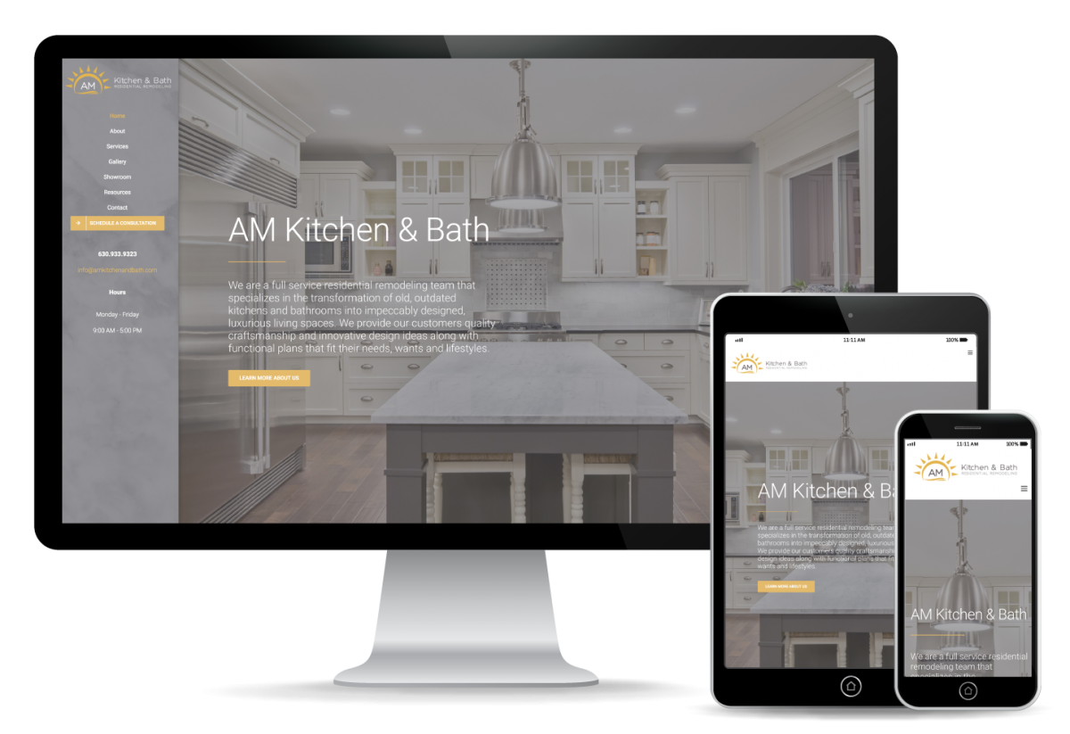 AM Kitchen & Bath of Yorkville was on the lookout for ways to improve their overall digital appearance. The owners turned to PMG to reimagine their website and create custom content to help increase their SEO. Our web team created a look inspired by the high end, contemporary feel of their showroom. Each page was thoughtfully designed to highlight their work and inform potential customers on their expansive list of services. The website’s written content was specially crafted to be readable for real web users as well as Google robots. We have expanded AM Kitchen & Bath’s sitemap and put them on an ongoing SEO program to help with their location-specific search results.